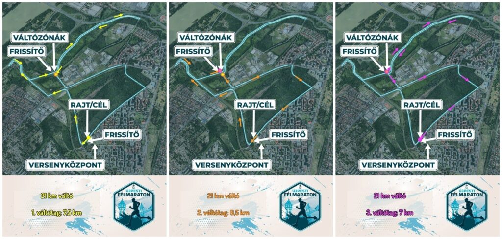 | Táv | 10,5 km (1 kör) | 21 km (2 kör) | 21 km (7,5 km + 6,5 km + 7 km) |